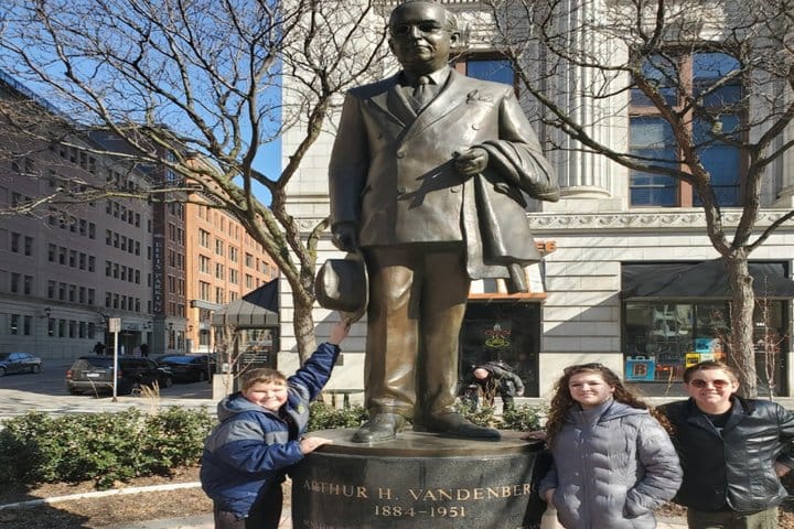 Set off on an unforgettable adventure in Grand Rapids! Explore the city’s deep roots, from the heritage of the Ottawa tribes to the bustling fur trade of the 19th century. Snap selfies, solve clever riddles, and uncover stories about influential figures like Jay Van Andel. Admire inspiring works of art—from bronze sculptures by Vincent Da Silva to the striking “Ecliptic” fountain. Follow in the footsteps of civil rights activists, dive into the city’s rich baseball tradition, and discover the surprising invention of the carpet sweeper. Ready to join the fun?